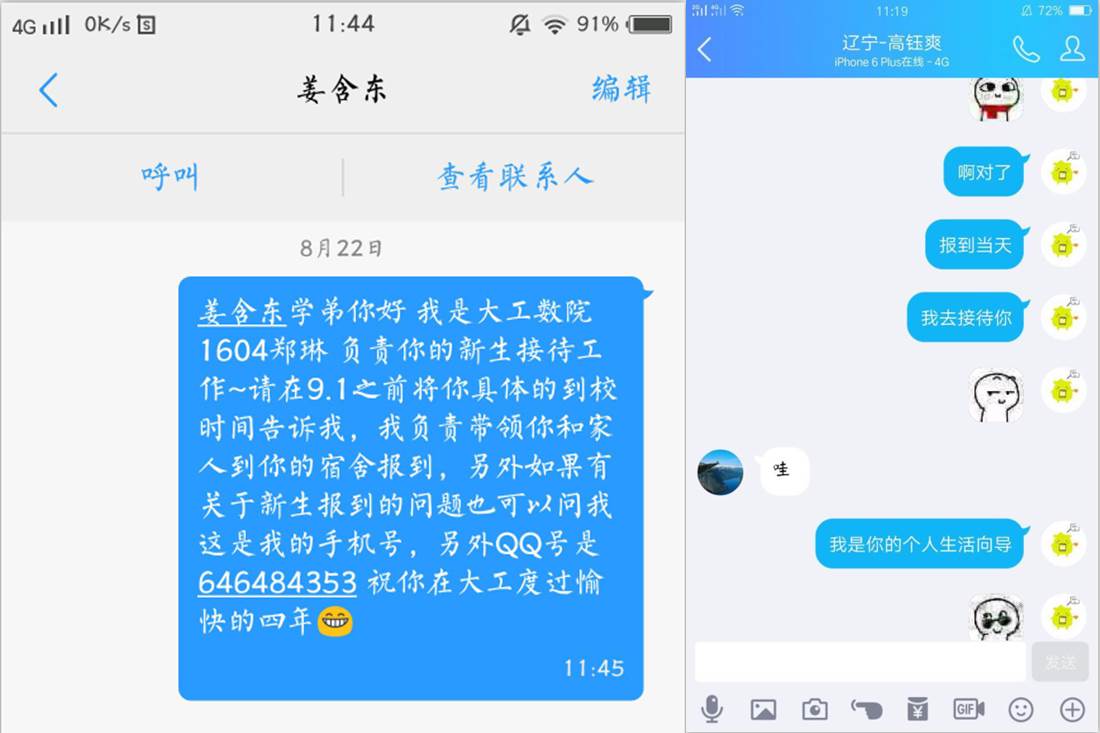 “朱维维同学,你好!我是你的生活向导刘振伟,欢迎加入437ccm必赢国际首页欢迎您大家庭,本次入学报到我将全程陪同你,并在今后的大学生活中与你共同成长,和你确认一下你是10:30从大连站坐校车来吧,我会在校车下车点等你,有事可以随时联系我。”和朱维维同学一样,数学学院的新生同学们在报到前都收到了志愿者发送的短信或者电话,最让新生们惊讶的是生活向导志愿者居然对自己的情况非常了解。